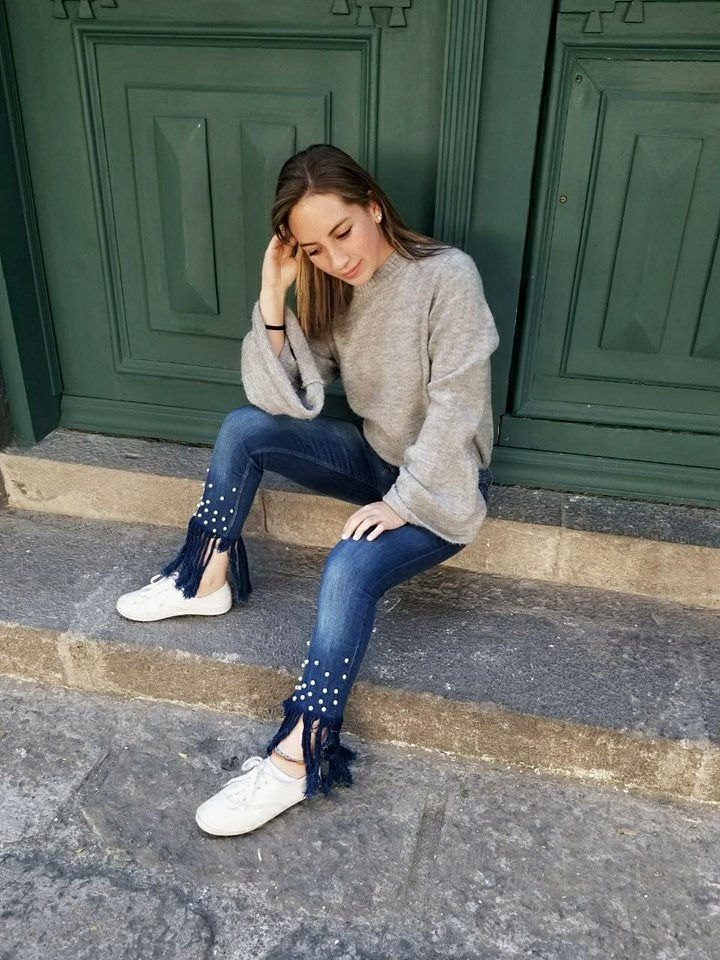 Recordemos que siguen siendo jeans y eso es lo mejor de todo! Porque puedes ponertelos para un día casual o para algo con más estilo. Lo que yo te recomiendo es que si vas por un estilo más relajado los lleves con unos tenis blancos que siguen siendo tendencia, con la blusa de tu agrado. Yo los combine con mis tenis preferidos y un sueter overzise que le daba un toque más acampanado a los flecos.